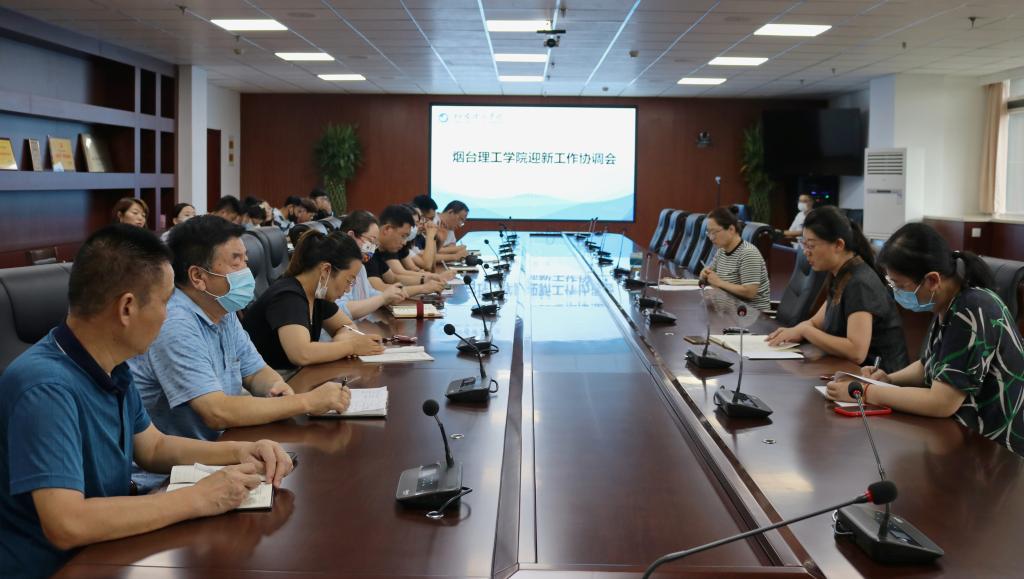 会上学生工作处传达《烟台理工学院2022年新生迎新工作方案》,介绍迎新工作相关要求和注意事项,包括新生报到时间、迎新现场区域划分、报到流程、责任分工等。随后党委宣传部、团委、教务处、财务处、后勤处、保卫处负责人就迎新工作进行部署安排。