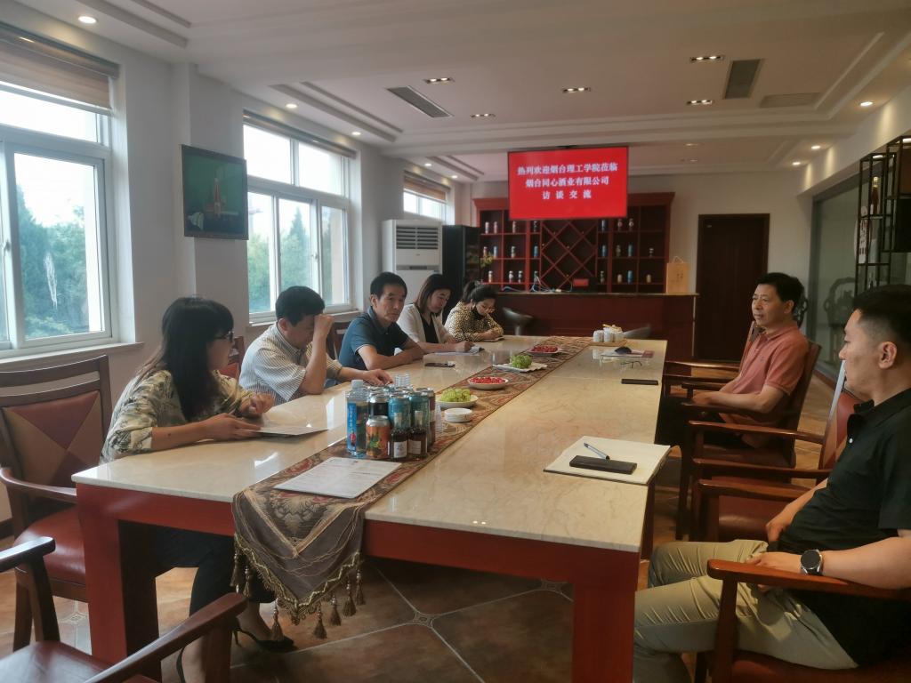 在与烟台同心酒业有限公司座谈会上,总经理李永政、技术总监胡刚从品牌由来、研发车间、生产车间、清洁能源设备、原材料保障等方面介绍了公司的经营范围及发展状况。双方将围绕啤酒品评和酿造开展教师培训进行探讨。