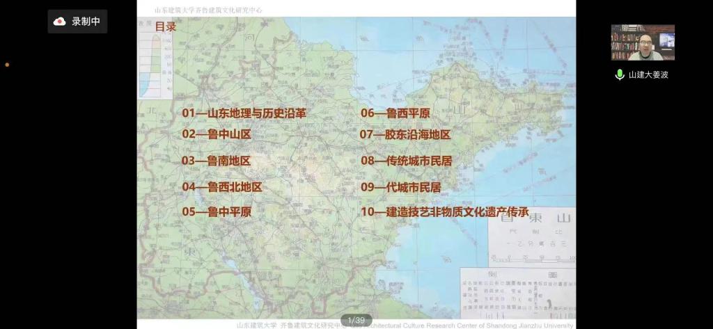 10月20日晚,山东建筑大学齐鲁建筑文化研究中心姜波教授应建筑工程学院的邀请,以线上形式召开“设计+”系列专题分享会之山东传统民居及文化特色。此次会议面向视觉传达设计、环境设计、建筑学三个专业,旨在实现应用型本科课程的建设,深入多元化课程教学改革,进一步弘扬中国传统民居及文化特色的普及,使传统文化融于设计理念。