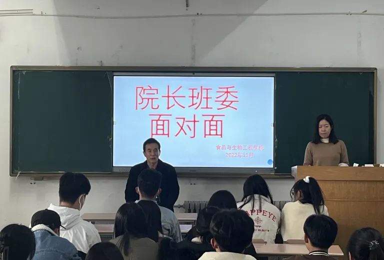 11月17日,食品与生物工程学院召开“院长面对面”暨学生干部座谈会。参加本次座谈会的有食品与生物工程学院院长金海珠、教务办公室主任宫志娴以及各班班长、团支书、学习委员。